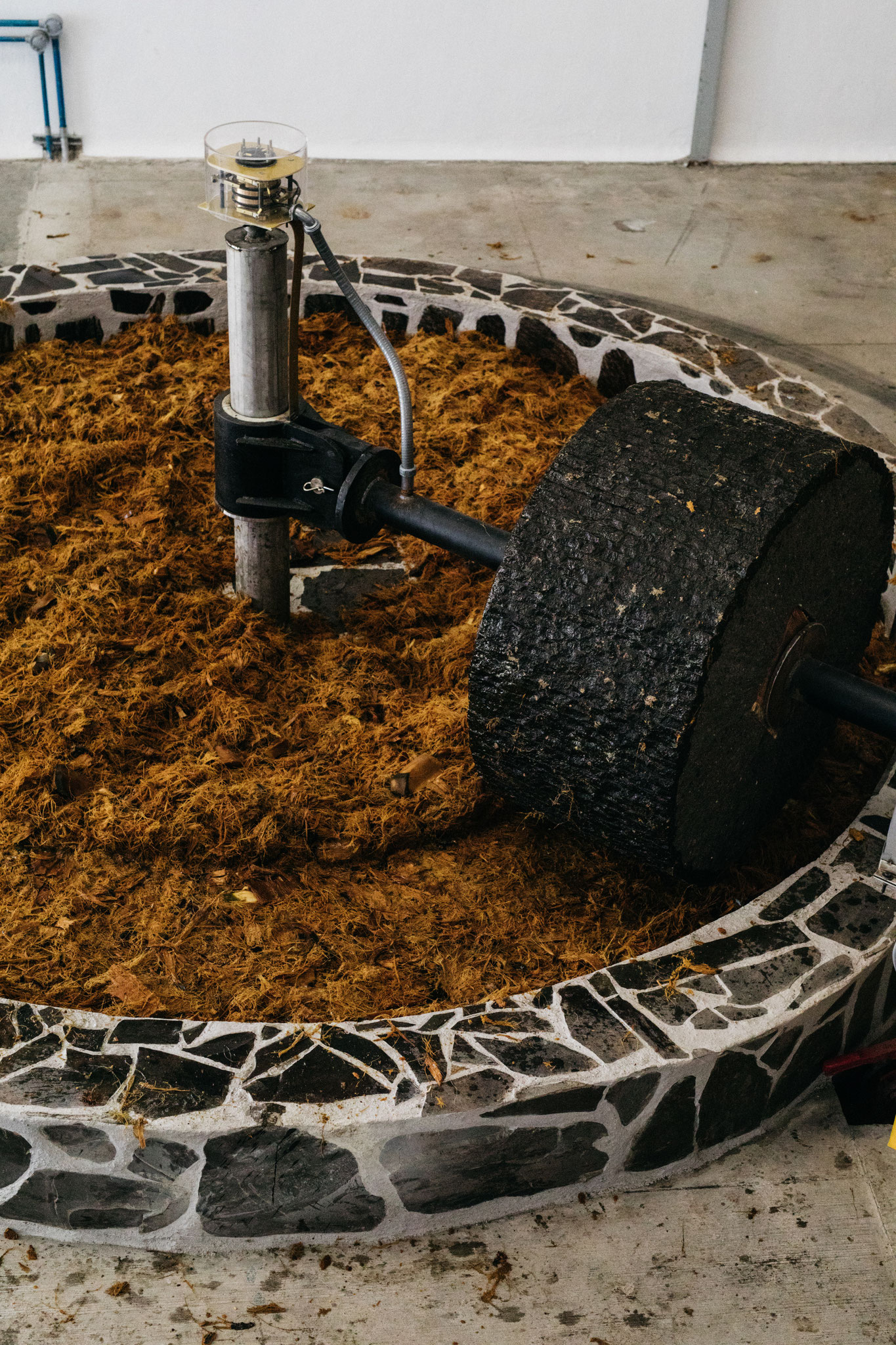 und die Piñas, die Agavenherzen werden in einer modernen Mehrstufenmühle zerkleinert.