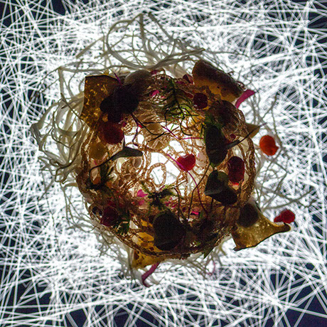 Der Schweizer Lichtkünstler Peter Diem hat zusammen mit Andreas Caminada unter dem Titel «Splendur» eine Serie von Gerichten kreiert. Auf sogenannten «Lightplates» werden Animationen und Bilder abgespielt und interagieren mit den Speisen.